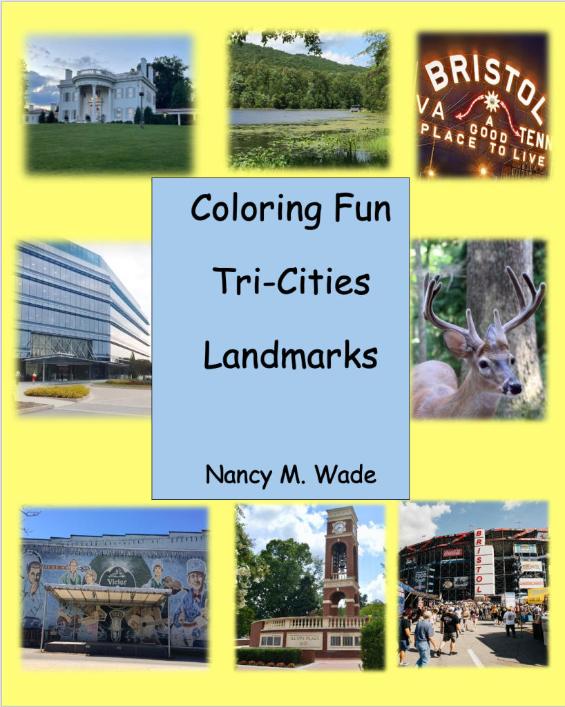 Relax, free your mind of worries, and color the pretty pages and fun scenes of the Meadowood or Maddie Brooke Magnolia Blossom Inn coloring books. Explore the fascinating landmarks of the Tri-Cities region of NE Tennessee in this new adult coloring book. The Tri-Cities Landmarks coloring book includes images from Kingsport, Johnson City, Bristol, and Jonesborough TN. A fun way to spend some quiet time.